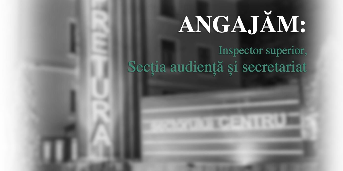 Pretura sectorului Centru anunță post vacant pentru funcția de Inspector superior în cadrul Secției audiență și secretariat.