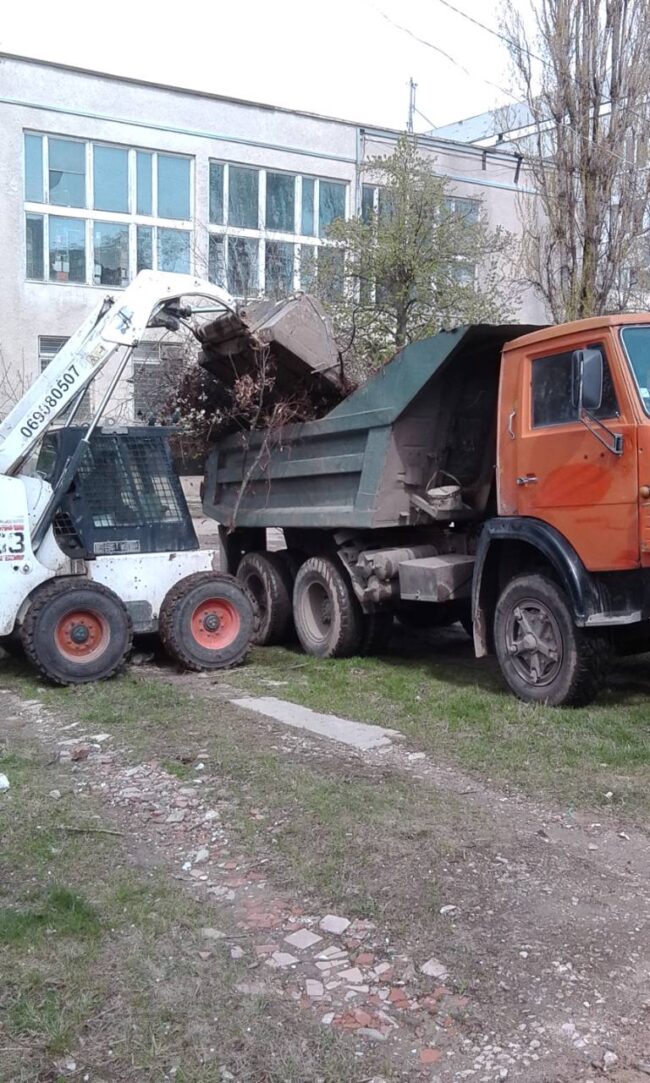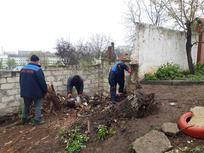 Lucrări de evacuare a gunoiului din preajma Centrului de reabilitare a copiilor din str. Grenoble 147.