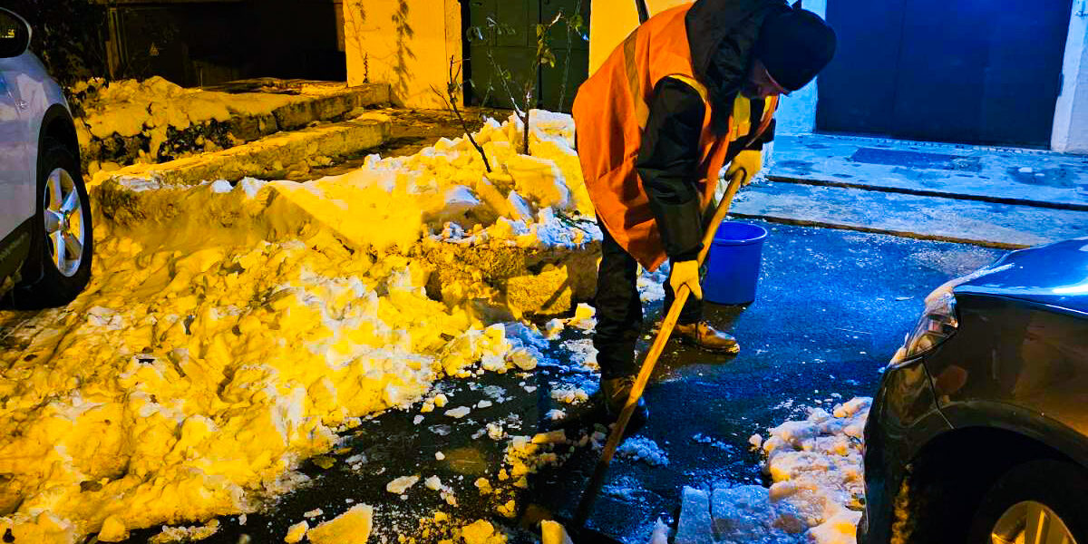 Accesele către curțile de bloc aflate în gestiunea Întreprinderilor Municipale de Gestionare a Fondului Locativ nr. 8-12 din sectorul Centru sunt deszăpezite. De trei zile continuu, angajații intervin manual cu lucrări de înlăturare a ninsorii și poleiului la scările de la intrarea în blocuri, la accesele către platformele de stocare a deșeurilor din curți, curăță trotuarele și trecerile de pietoni. În același timp, echipele prelucrează suprafețele cu material antiderapant format din sare și nisip.