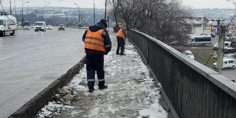 La accesul pietonal al podurilor din sectorul Centru s-a deszăpezit și presurat material antiderapant, în scopul combaterii poleiului.