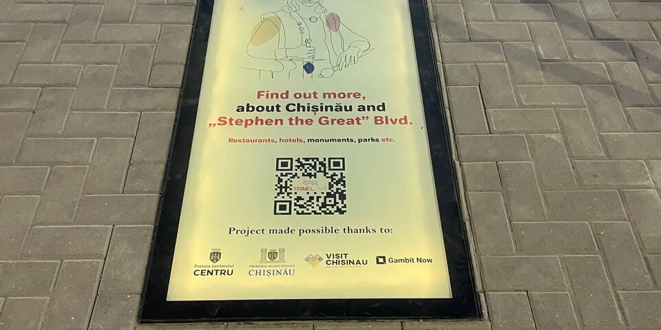 Prin scanarea codului QR, ești redirecționat către harta digitală www.travelant.org ce indică locația ta actuală și toate atracțiile Chișinăului din zonă. Pe această platformă interactivă, vei găsi toate punctele de interes ale orașului, inclusiv hotele, restaurante, cafenele, obiective istorice şi culturale, precum și numeroase alte atracţii- centre de agrement, parcuri, centre de tineret și altele.