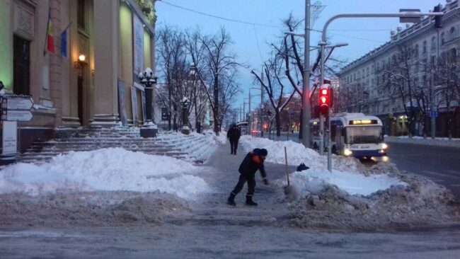 În sectorul Centru pe timpul nopţii au fost antrenate de la Î.M. Regiei „Exdrupo” 6 unităţi de tehnică specializată: 3 Kamazuri la curăţare şi împrăştiere cu material antiderapant, 2 tractoare cu perie şi lamă, 1 greider, şi au executat lucrări de curăţare şi presurare cu material antiderapant la partea carosabilă a străzilor principale: Ştefan cel…