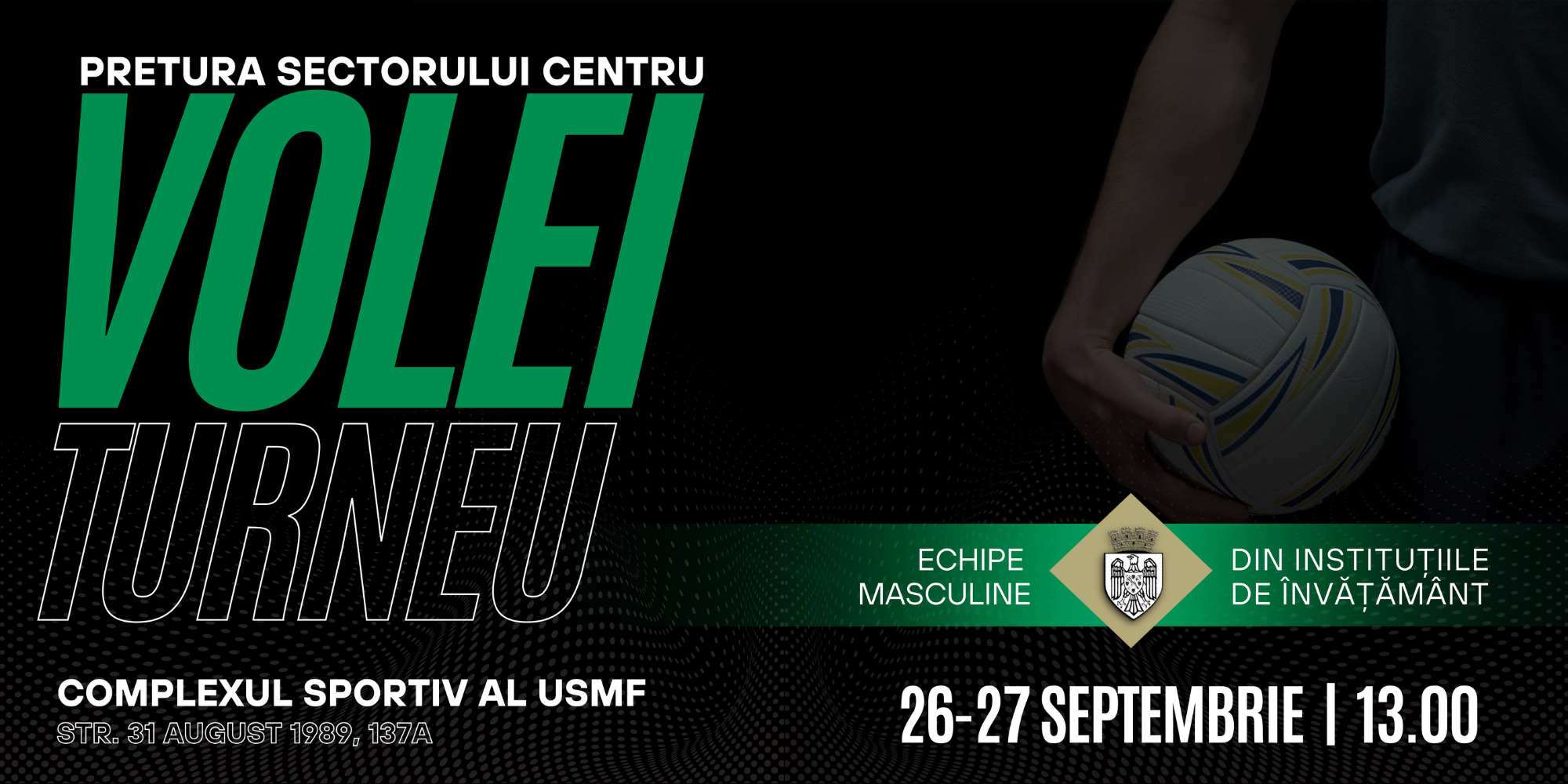 Sala Complexului Sportiv al USMF din str. 31 August 1989, 137A va reuni echipele masculine de volei ale instituțiilor de învățământ liceal din sectorul Centru.
