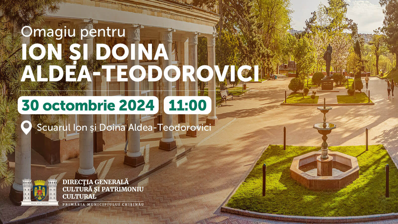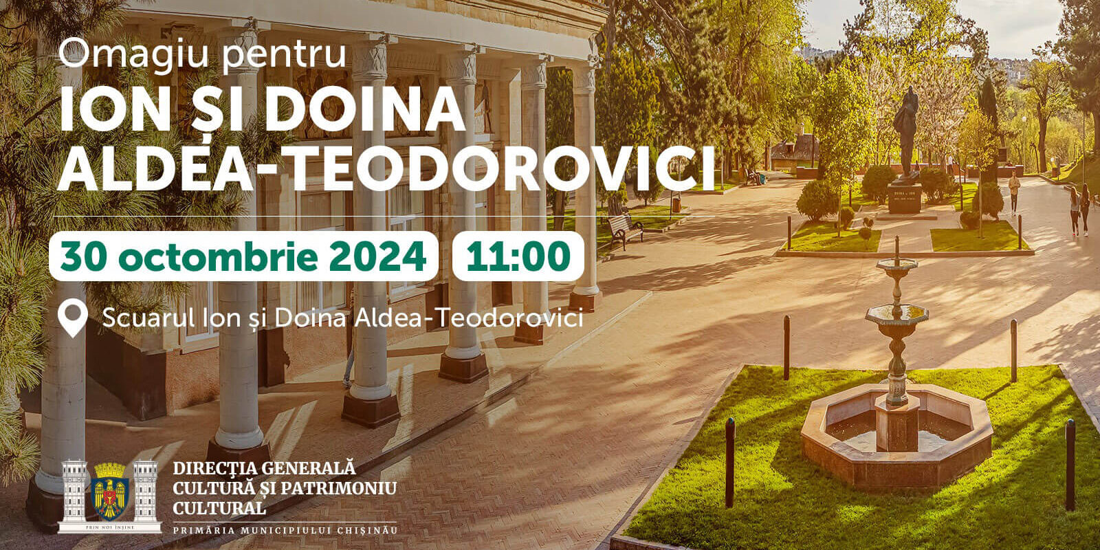 Miercuri, 30 octombrie 2024, începând cu ora 11:00, în Scuarul Monumentului „Două Inimi Gemene”, de la intrarea în Parcul „Valea Morilor” din sectorul Centru va avea loc un eveniment-omagiu dedicat lui Ion și Doina Aldea-Teodorovici.