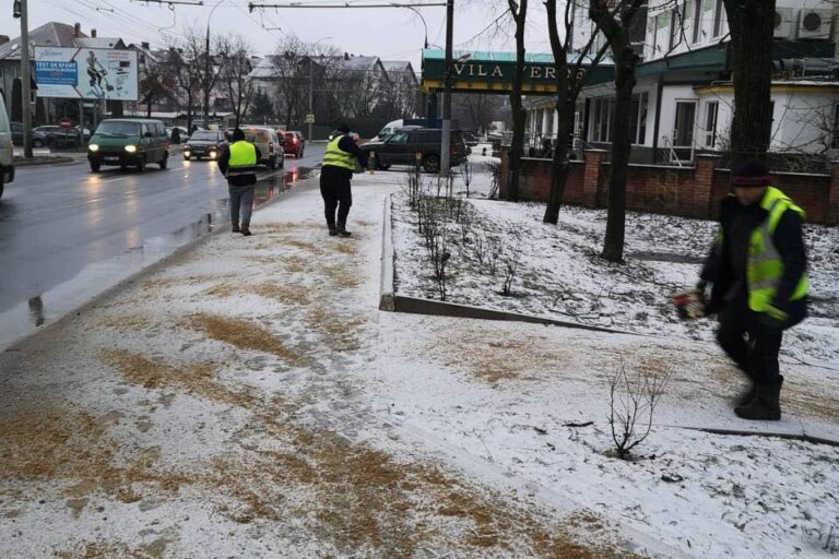 În noaptea de 31 ianuarie, serviciile municipale au deszăpezit și au presărat material antiderapant în sectorul Centru