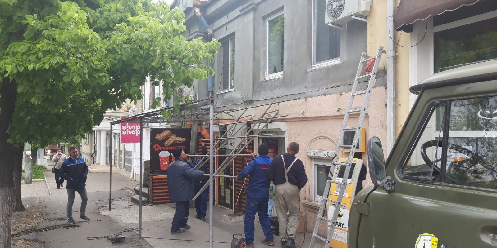 La data de 05 mai 2020, în baza dispoziției Pretorului sectorului Centru nr. 66-d din 30.04.2020 „Cu privire la demontarea copertinei instalate în mod neautorizat pe trotuar, teren proprietate publică/municipală, din str. A. Șciusev, 62” angajații Întreprinderii Municipale pentru Servicii Locative Centru au efectuat lucrările de demontare forțată a copertinei de pe adresa menționată mai sus.