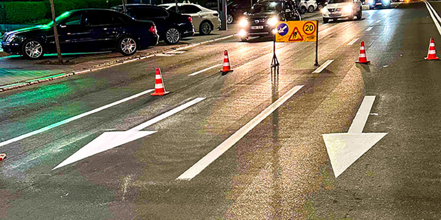 De către ÎM Regia ”Exdrupo”, mecanic, dar și manual a fost aplicată vopsea reflectorizantă, la trecerile de pietoni și de separare a sensurilor, precum și elemente de orientare și semnalizare orizontală.>