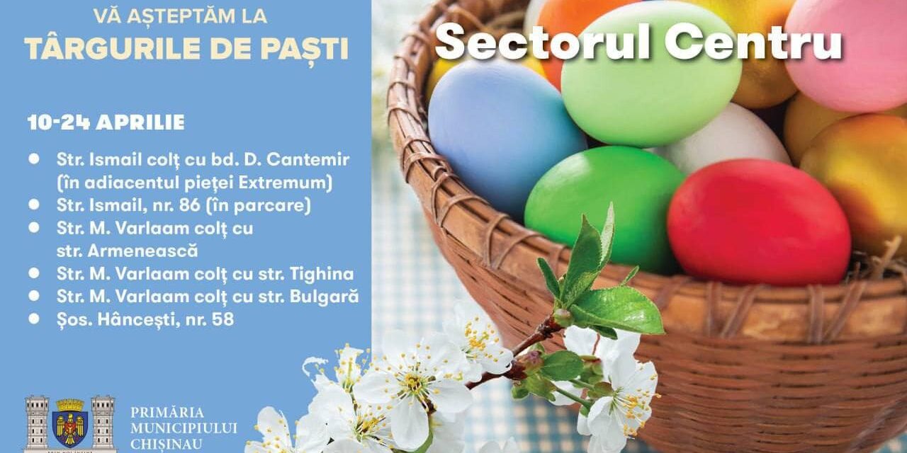 Târgurile de Paști sunt desfășurate în mai multe locații din sectorul Centru în perioada 10 – 24 aprilie, între orele 7:00-19:00.
