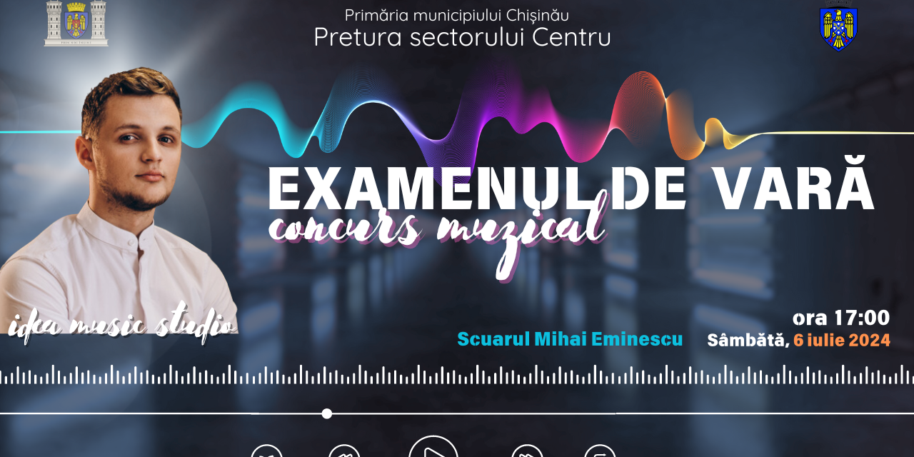 Concurs muzical ”Examenul de vară”. Concertul studioului IDEA MUSIC, tineri interpreți locali, soliști și instrumentiști talentați vor evolua cu un spectacol muzical de excepție.
