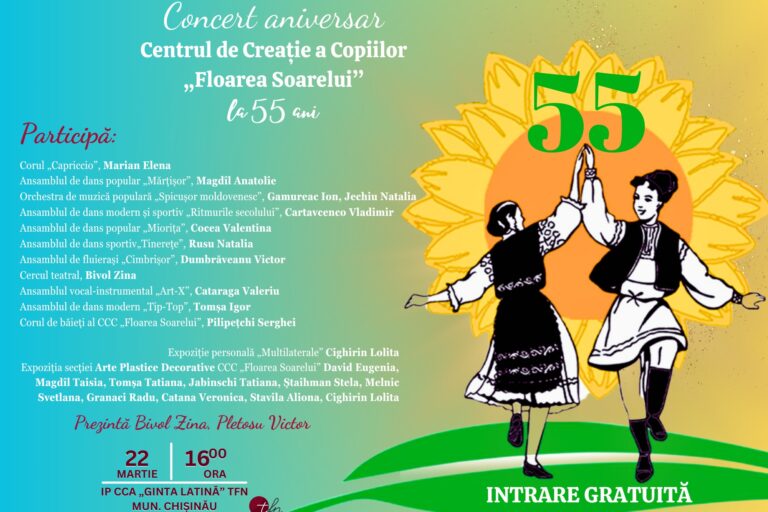 În onoarea acestei vârste însemnate, Centrul de Creație organizează concert aniversar susținut de către ansamblurile și formațiile de copii din cadrul instituției. Evenimentul se va desfășura la 22 martie 2024…