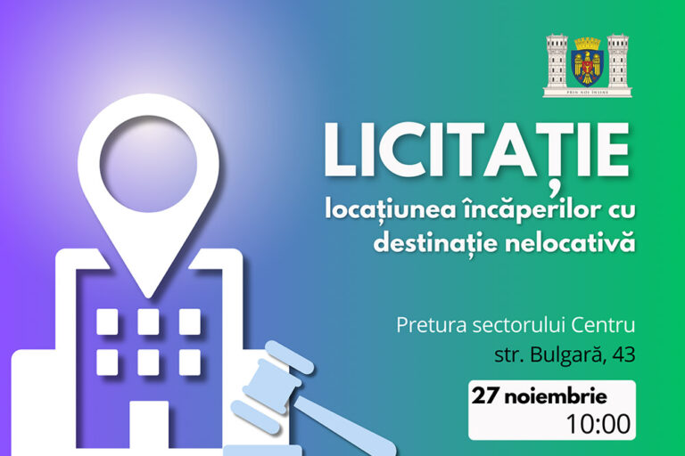 Primăria Municipiului Chișinău informează că pe data pe 27 noiembrie 2024, ora 10:00, în Sala de ședințe a Preturii sectorului Centru, str. Bulgară, 43, va avea loc licitația pentru obținerea…
