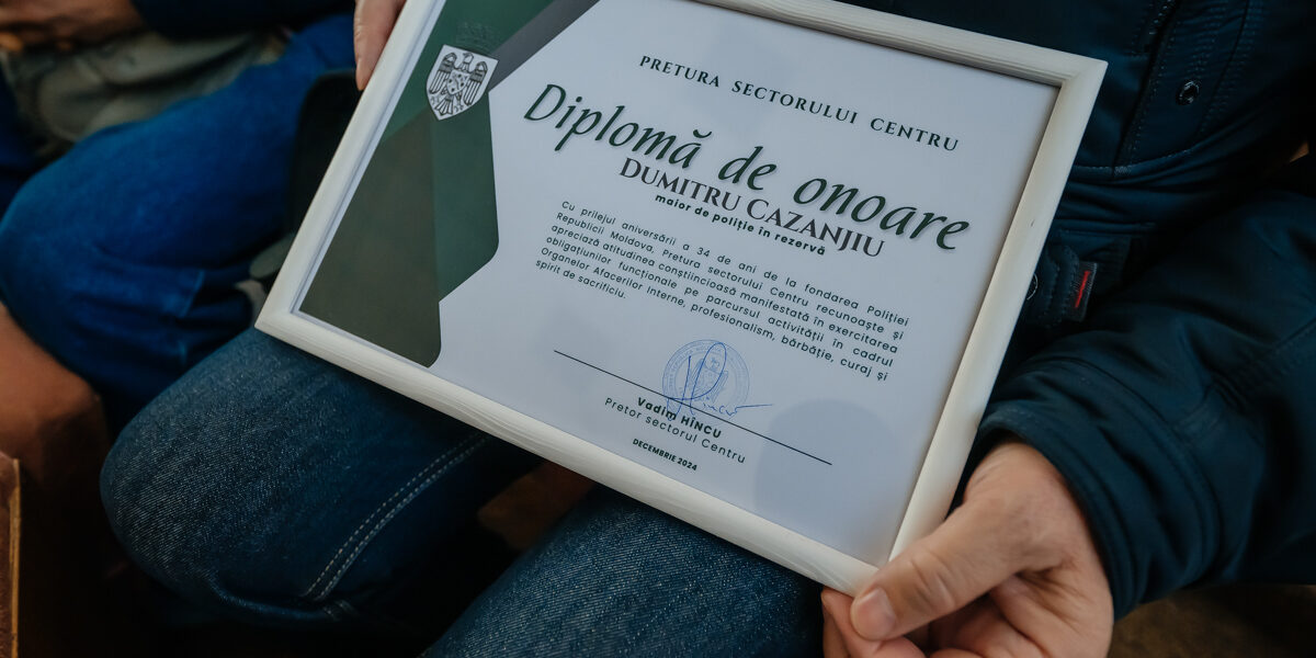 Astăzi a avut loc întâlnirea administrației locale cu membrii Asociației Veteranilor a Inspectoratului de Poliție Centru, în cadrul căreia, din partea Pretorului, Vadim Hîncu au fost conferite diplome de onoare foștilor angajați în domeniul polițienesc, pentru succese în activitate, exigență, înalt nivel de disciplină și devotament față de cauza încredințată.
